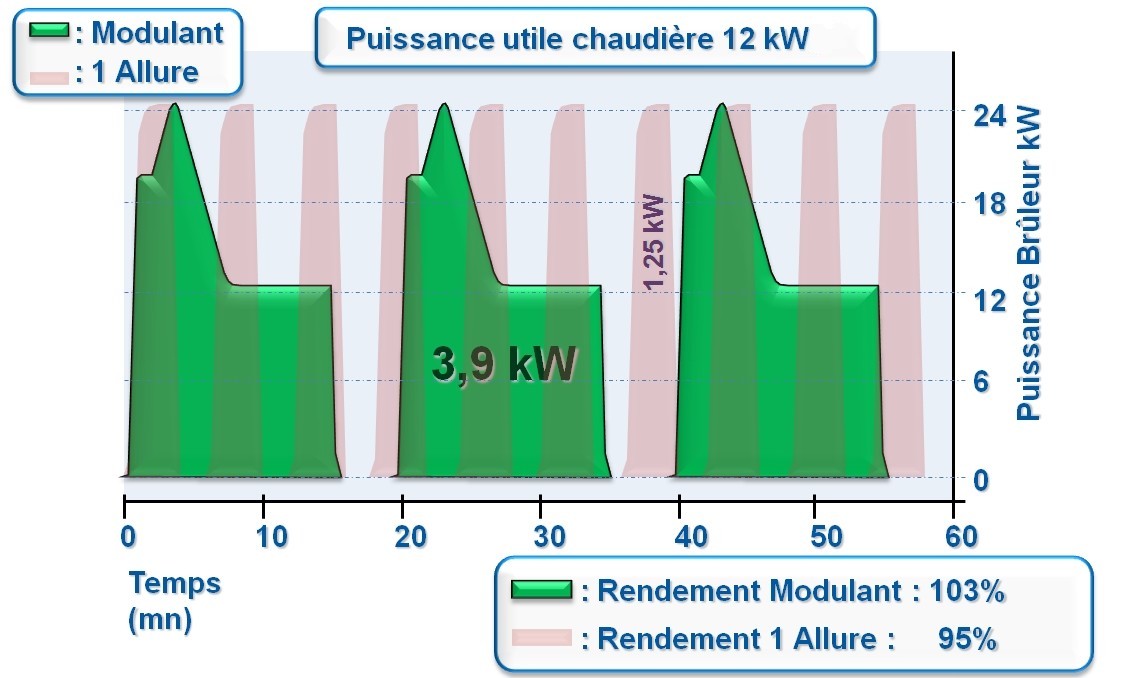 3 cycles de fonctionnement à l’ heure au lieux de 10 pour une solution 1 allure de même puissance.